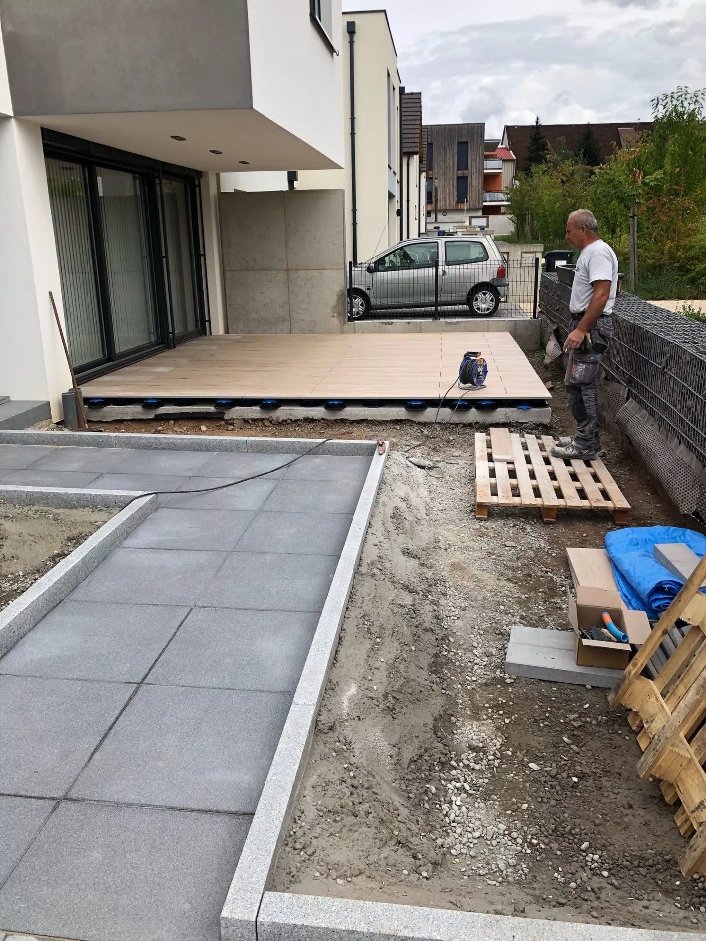 Nous réalisons vos allées, terrasses et fondations avec un nivellement précis et des finitions esthétiques adaptées à votre terrain.